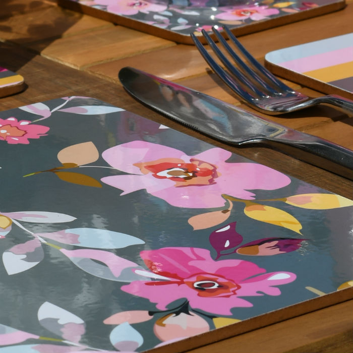 Bring joy to your dining table with our Gardenia placemats set of 4. These placemats are not just practical but add a vibrant touch to every meal. Crafted with a wipe-clean surface, they’re perfect for keeping your table spotless with minimal effort.