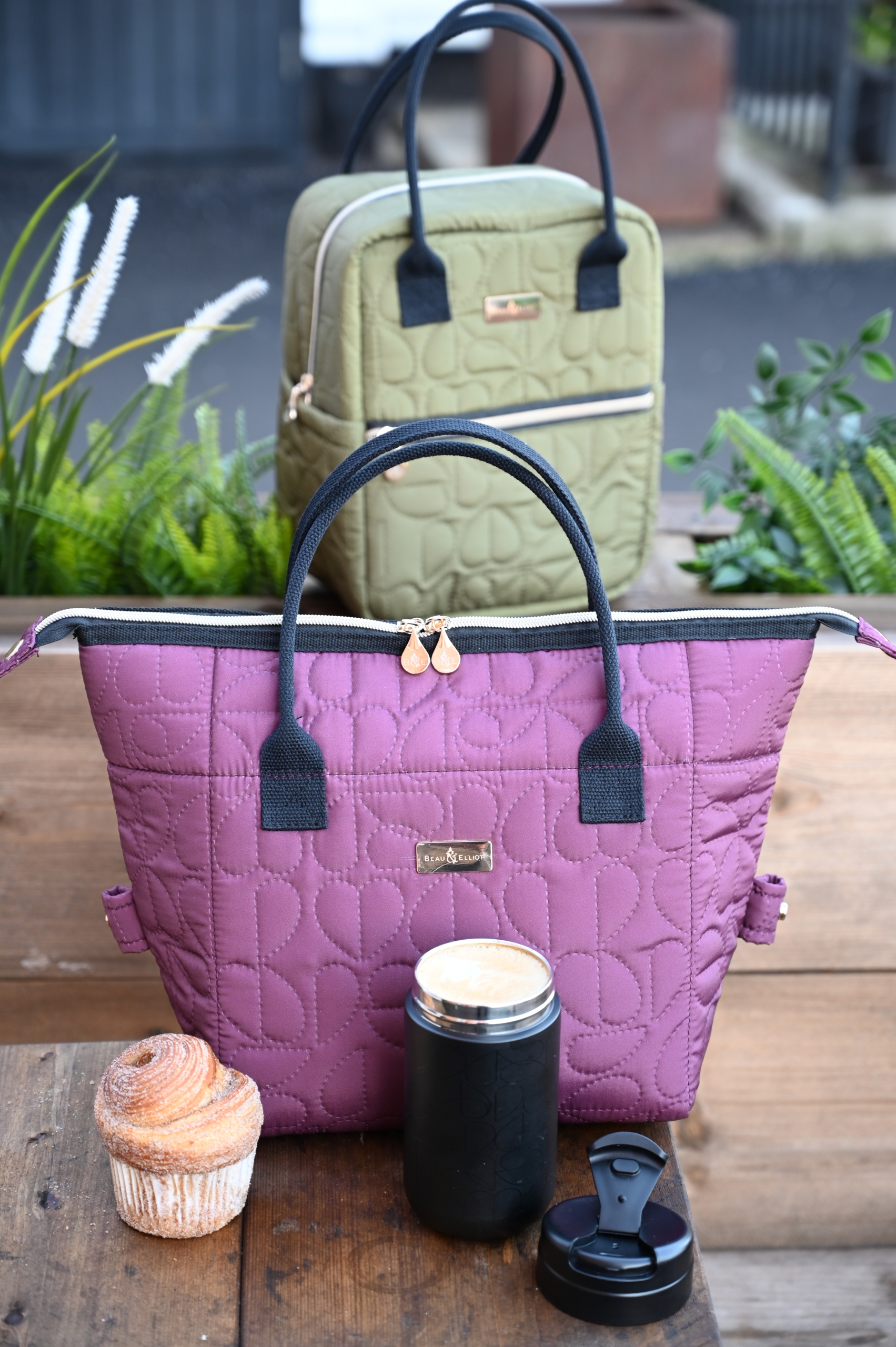 Oxford Quilted Convertible Lunch Bag Mulberry