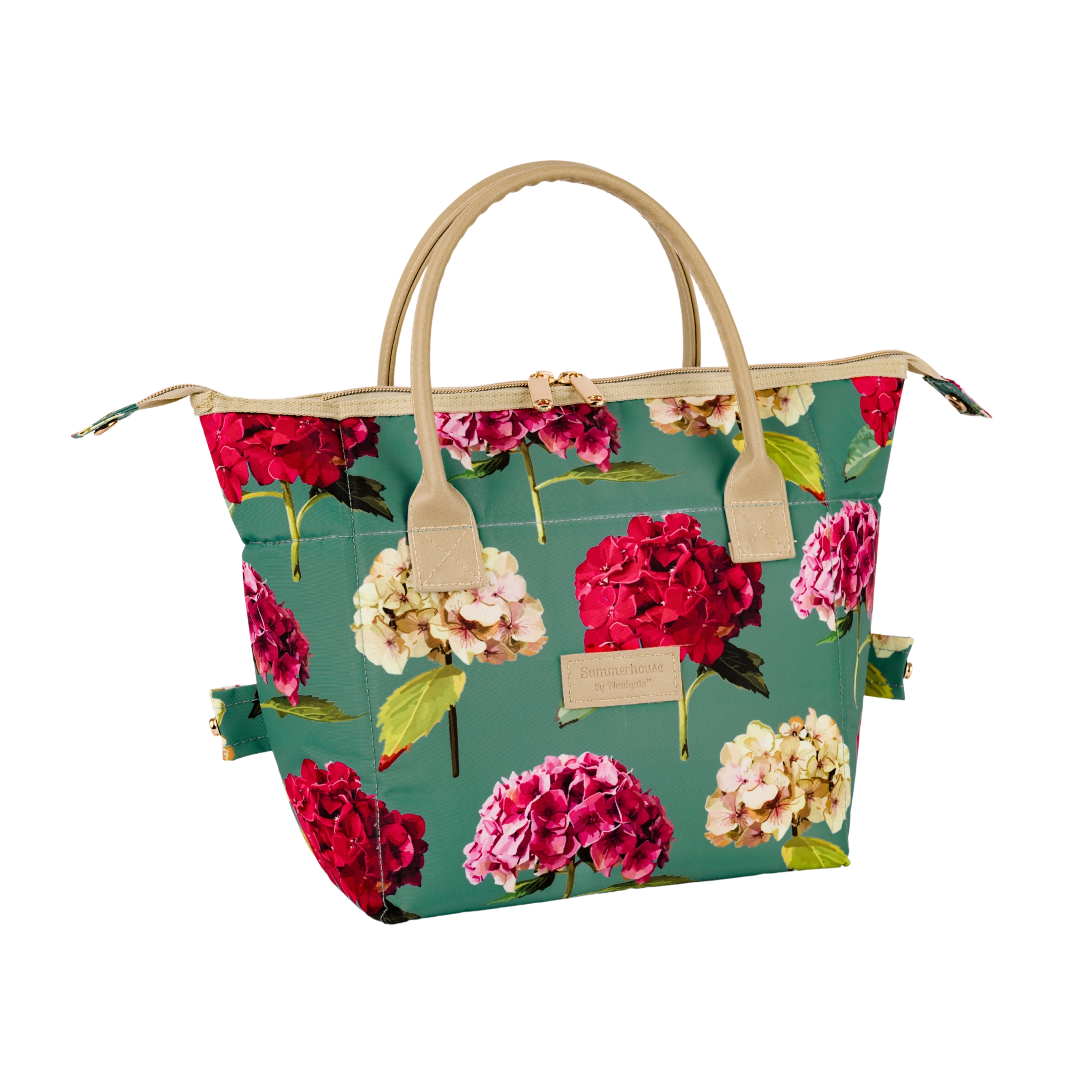 - Insulated lunch bag that converts from a vanity style to a spacious tote bag.