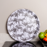 Add some style to your home with our Madagascar Zebra Tray. Madagascar features an eclectic mix of nostalgic animal & tropical prints. This collection will bring a touch of wild to the home with bold designs and fashion accents. Ideal for daily use, this round decorative tray is made from willow wood meaning you can simply wipe clean the tray after use.