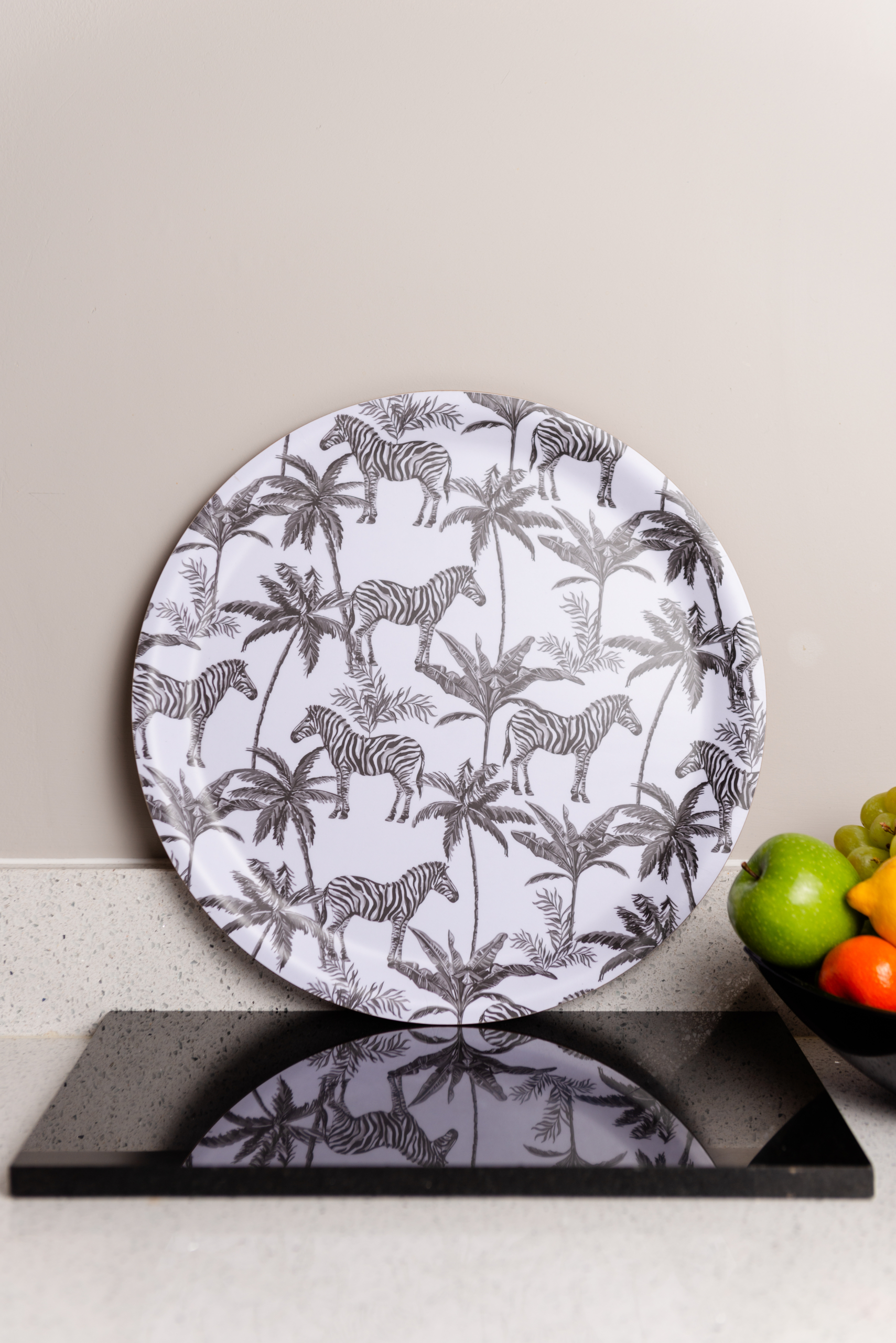Zebra Round Serving Tray
